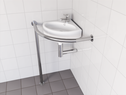 Поручень для угловой раковины арт. DS IF35 на стойке 440х490х750мм - правый или левый на выбор